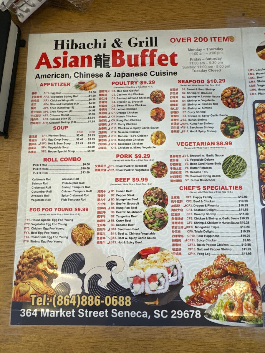 Welcome to Hibachi & Grill Asian Buffet, a hidden gem located at 364 Market St, Seneca, SC. This buffet not only excels in offering a wide array of delicious Asian dishes but also prioritizes quality and presentation. With rave reviews from patrons like Sonia Doyle, it's evident that the restaurant strives for excellence, elevating the buffet experience above standard Chinese cuisine.